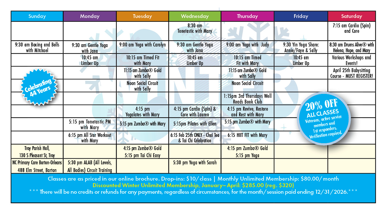 It features a variety of fitness classes, wellness workshops, and health programs designed to keep our community active and engaged throughout the season. From yoga and strength training to mindfulness sessions.